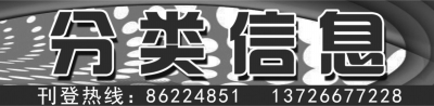 (《分类信息》由珠江时报社为您提供,转载请注明来源,未经书面授权许可,不得转载或镜像。